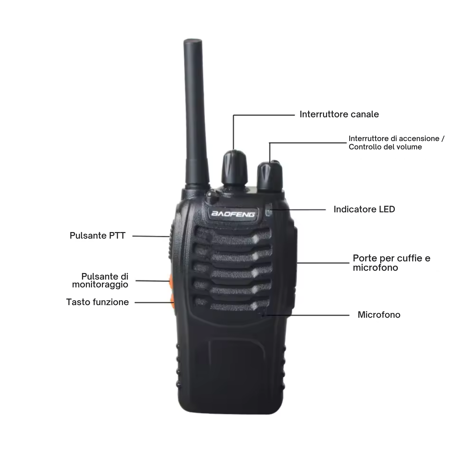 Sia in escursioni, eventi o al lavoro, questo walkie talkie è la soluzione pratica per una comunicazione istantanea e sicura!